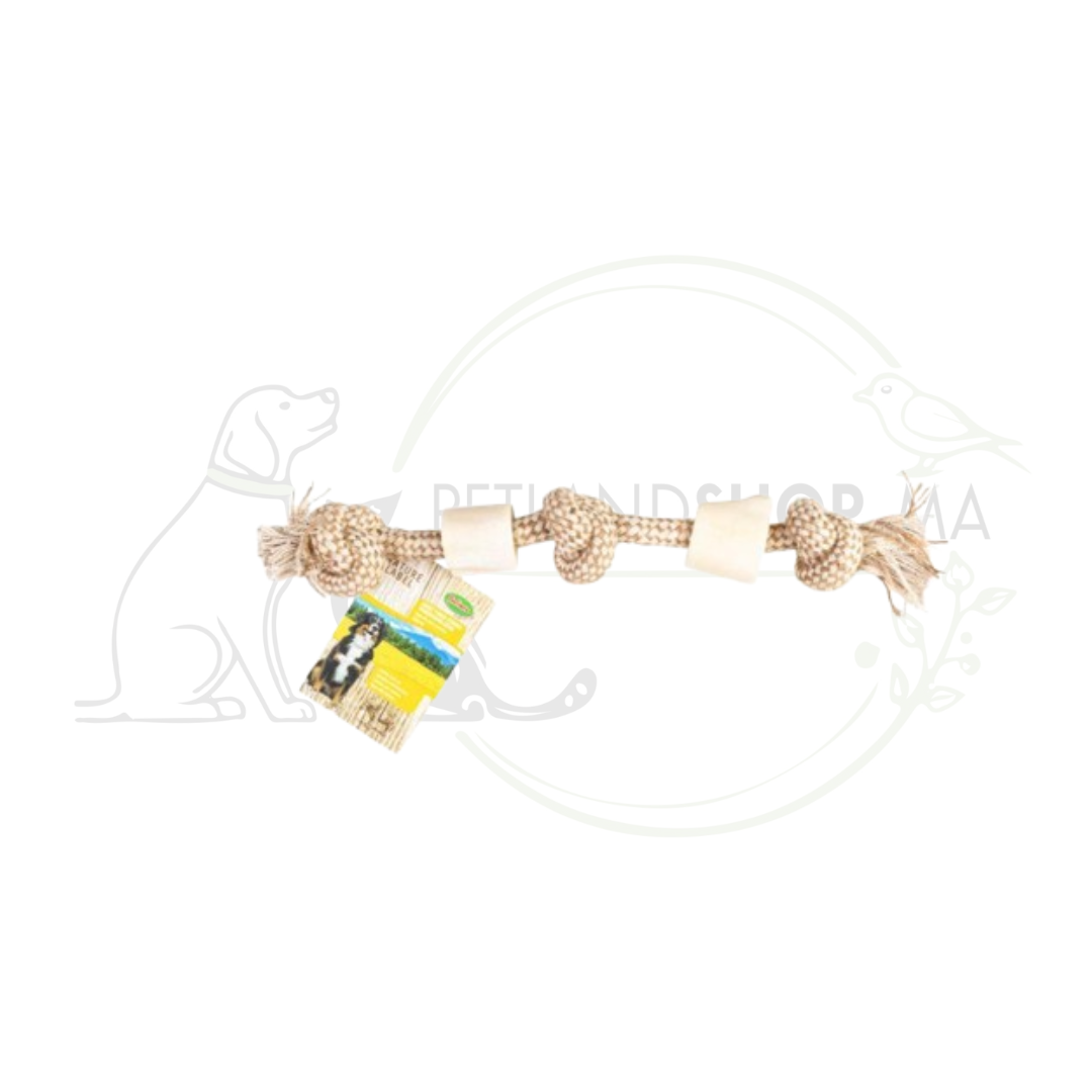 Corde Bubimex avec os pour chien, taille M. Stimule la mastication et le jeu actif, idéale pour renforcer les dents et l’occupation du chien.